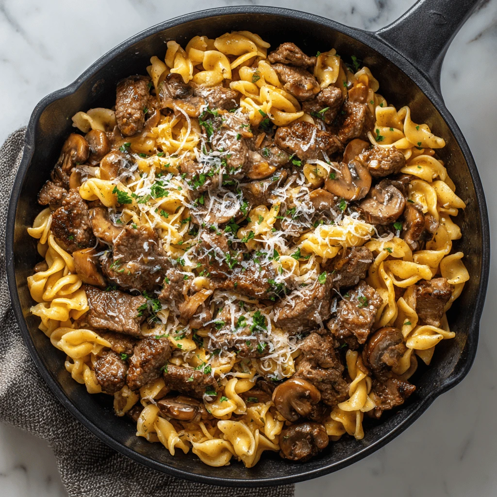 - Over Pasta: Toss the beef and mushroom skillet with your favorite pasta shape, such as egg noodles, fettuccine, or penne.