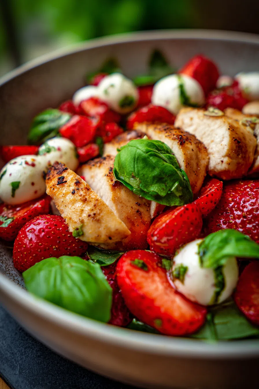 - The combination of juicy chicken, sweet strawberries, and creamy mozzarella is a match made in heaven.